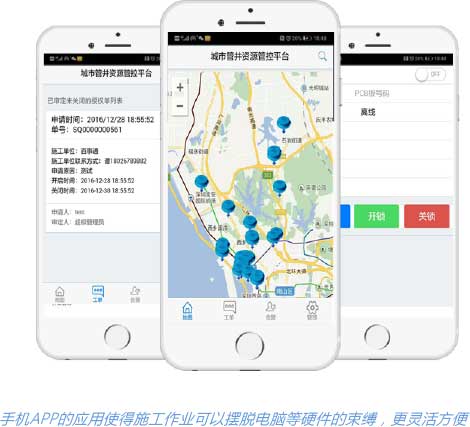 • 城市管井資源管控系統是利用多項自主核心專利技術,實現科學的井管資源實時監管監控的完整系統,其主要由防水智能電子鎖/手機APP平臺/城 市管井資源管控平臺/應急開鎖器